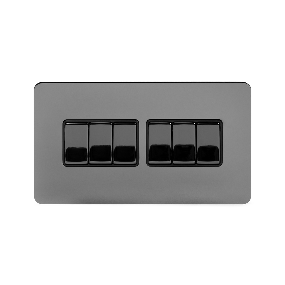 Soho Lighting Black Nickel Flat Plate 10A 6 Gang 2 Way Switch Blk Ins Screwless