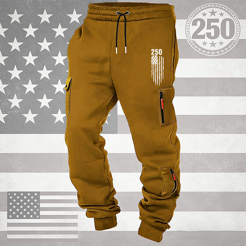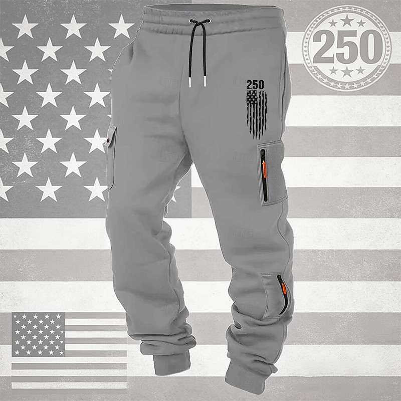 Men's Cargo Sweatpants Sweatpants Joggers Trousers Drawstring Pocket Elastic Waist National Flag Comfort Breathable Daily Outdoor America's 250th Anniversary Vacation Fashion Black White Micro-elastic