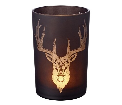 EDZARD Windlicht Teelichtglas Kerzenglas Alex, schwarz, Hirsch-Design, Höhe 18 cm
