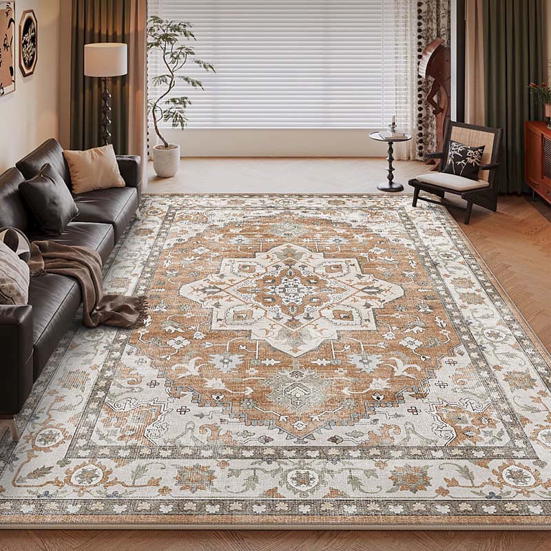 American Vintage Style Area Rug for Living Room, Easy Care Faux Cashmere Carpet, Durable, Soft and Comfortable, Ideal for Home Use, Stylish and Practical Rug