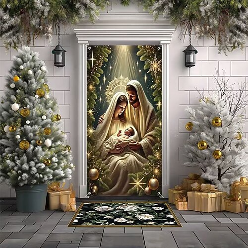 Compleanno Poster Copertura della porta Banner per esterni Vetro colorato Chiesa Carino Medievale 3D Da serata Dormitorio Stanza per adolescenti Dormitorio universitario Ragazzi Man Cave Frat Bedroom