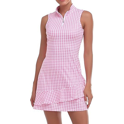 Per donna Quadri Maglietta sportiva Polo da golf Maglia da tennis Senza Maniche Cerniera Alta elasticità Traspirante Tennis Golf Pickleball Collo ripiegato Collo con zip Maglietta Top Nero Rosa Blu