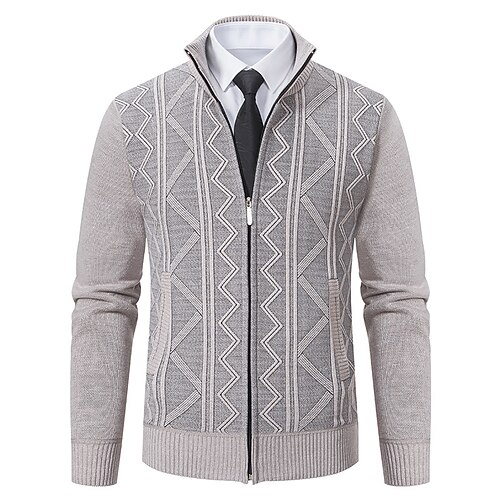 Per uomo Maglione a trecce Felpa Cardigan Maglione con Zip Treccia Maglia Top Regolari Con zip Lavorato a maglia Semplice Collo alla coreana Vacanza Moda Casuale Abbigliamento quotidiano Abbigliamento