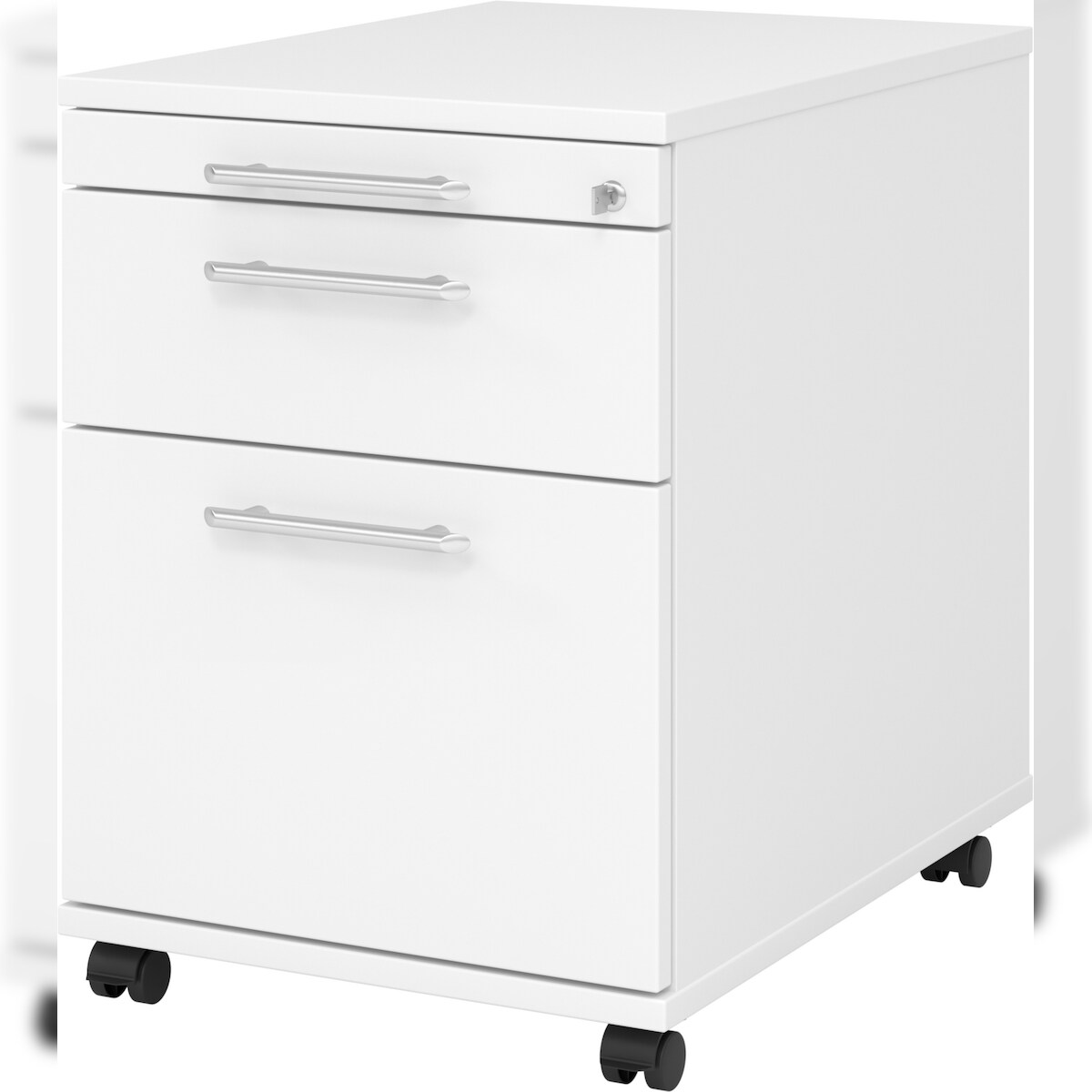 bümö Rollcontainer mit Hängeregister für Hängeordner, Container abschließbar in weiß - Rollwagen mit Hängeregistratur als Schreibtisch Unterschrank