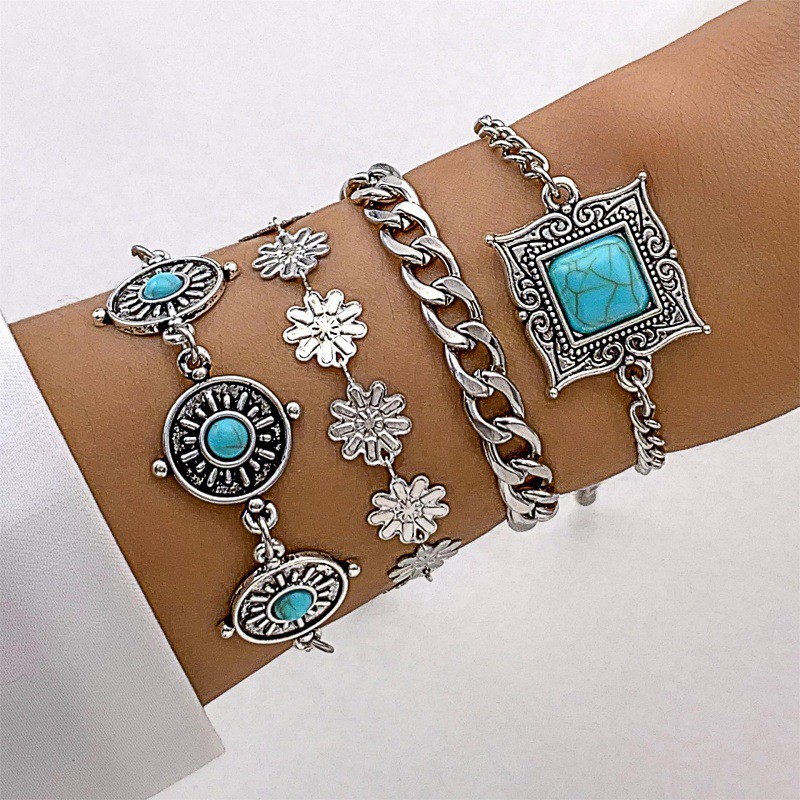 Carnival 2026Rio Carnival Samba Accessories Boho Vintage Silver Tone Turquoise Bracelets for Women Brazil Festival Performance Costume