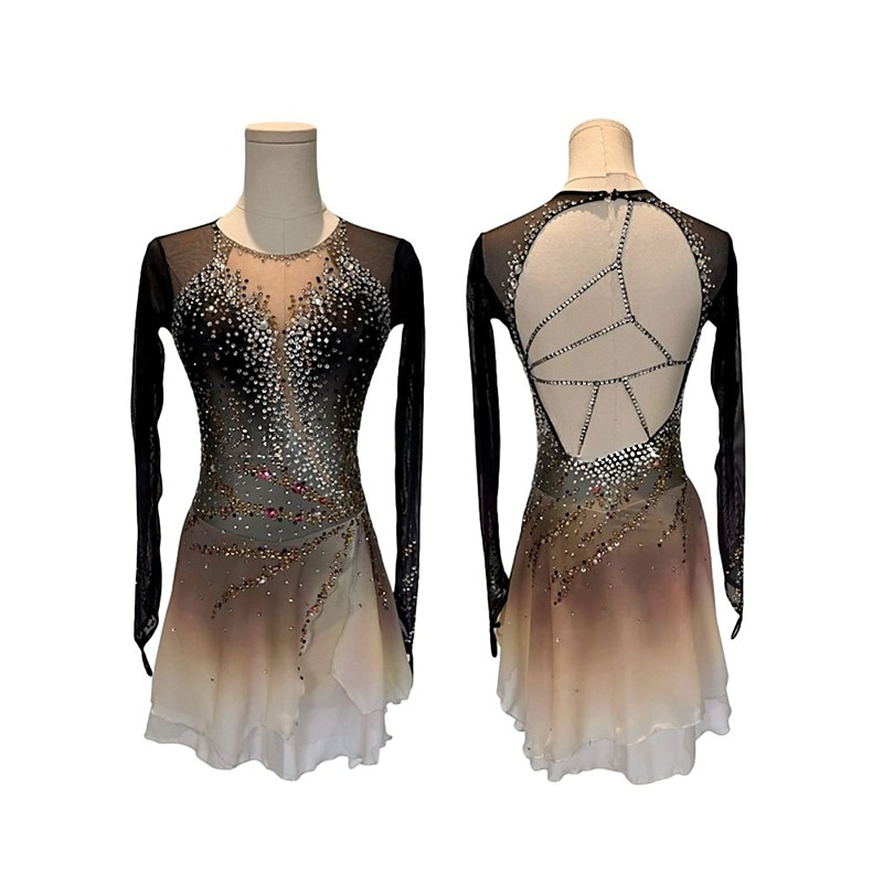 Figure Skating Dress Women's Girls' Ice Skating Dress Outfits Black White Mesh Spandex High Elasticity Competition Skating Wear Handmade Crystal / Rhinestone Long Sleeve Ice Skating Figure Skating