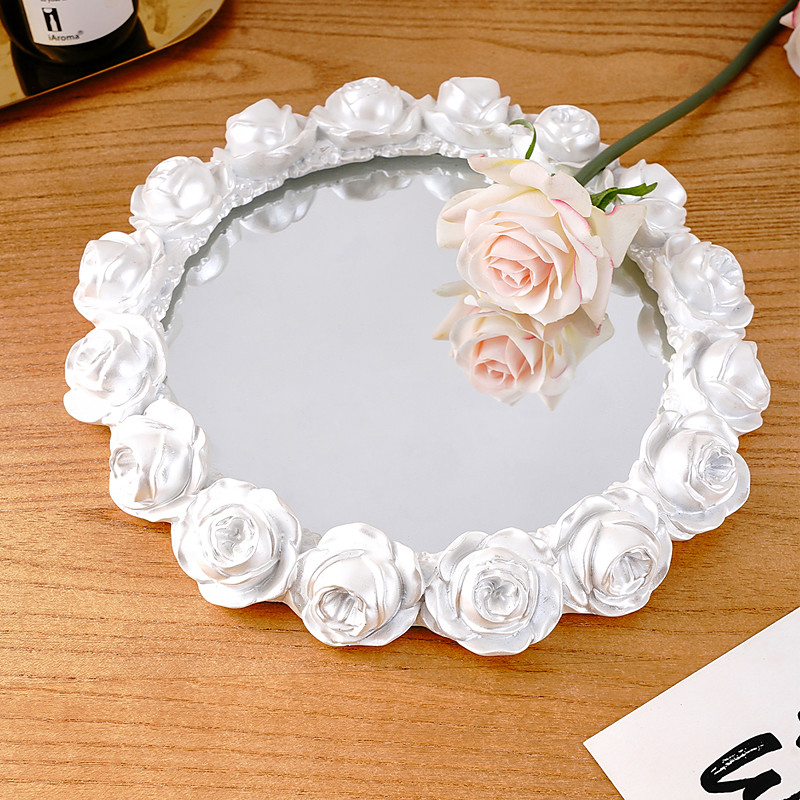 Rose Wreath Mirrored Decorative Tray, Hand-Painted Resin Vanity Organizer with Glass Mirror, Jewelry Makeup Display for Tabletop Decor, Valentine's Day Wedding Accent