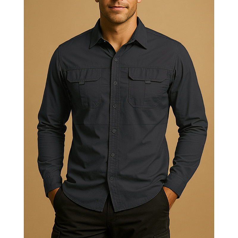 Men's Shirt Button Up Shirt Work Shirt Cargo Shirt Black White khaki Army Green Long Sleeve Plain Lapel Hawaiian Vacation Pocket Clothing Apparel Fashion Casual Comfortable