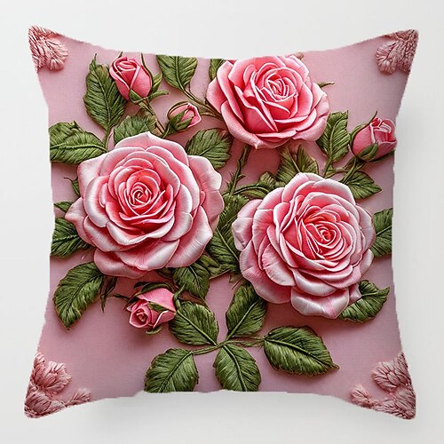 Federa per cuscino decorativa con stampa piatta 2D in stile ricamo floreale, federa per cuscino in peluche corto e morbido con ricamo finto per divano, camera da letto, soggiorno, arredamento per la casa