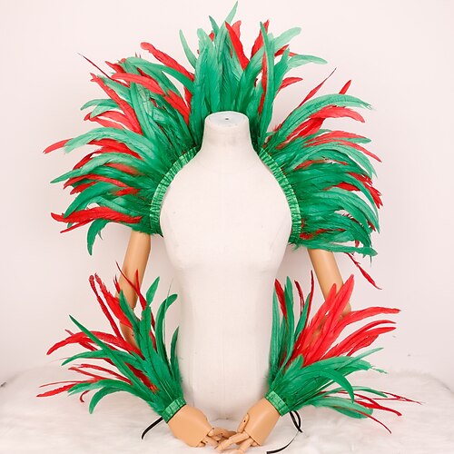 Accessori Samba per il Carnevale di Rio - Set costumi di piume rosse e gialle per Carnevale - Mantello sulle spalle e polsi per festa di Mardi Gras danza - Costume per performance al festival del