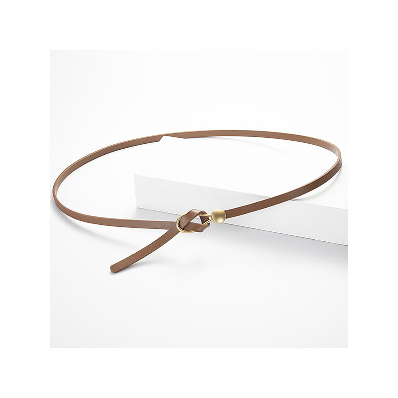 Women's Skinny PU Leather Wrap Belt – Adjustable Gold-Tone Ring Ball Buckle Waist Cincher, Minimalist Style for Dresses, Blazers Coats, Perfect for Work, Date Night Party Outfit