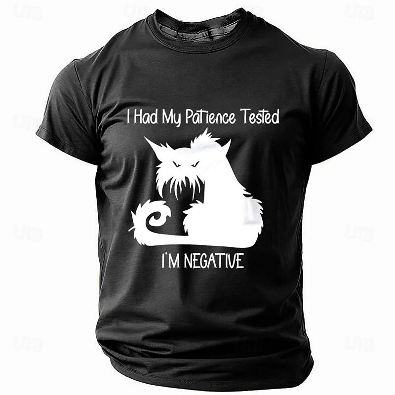 Men's Cat Text T Shirt Short Sleeve T shirt 3D Print Crew Neck Shirt Fashion Athleisure Street Sports Outdoor Black Dark Green Dark Blue Summer Spring Clothing Apparel S M L XL XXL XXXL