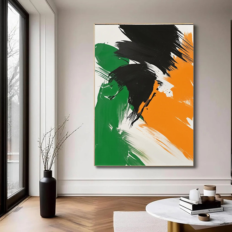 Large handmade Black White Green Orange oil painting Wall Art Abstract Painting Abstract Art Best Selling Art Modern Abstract Canvas Art Large Oil Painting Orange Art