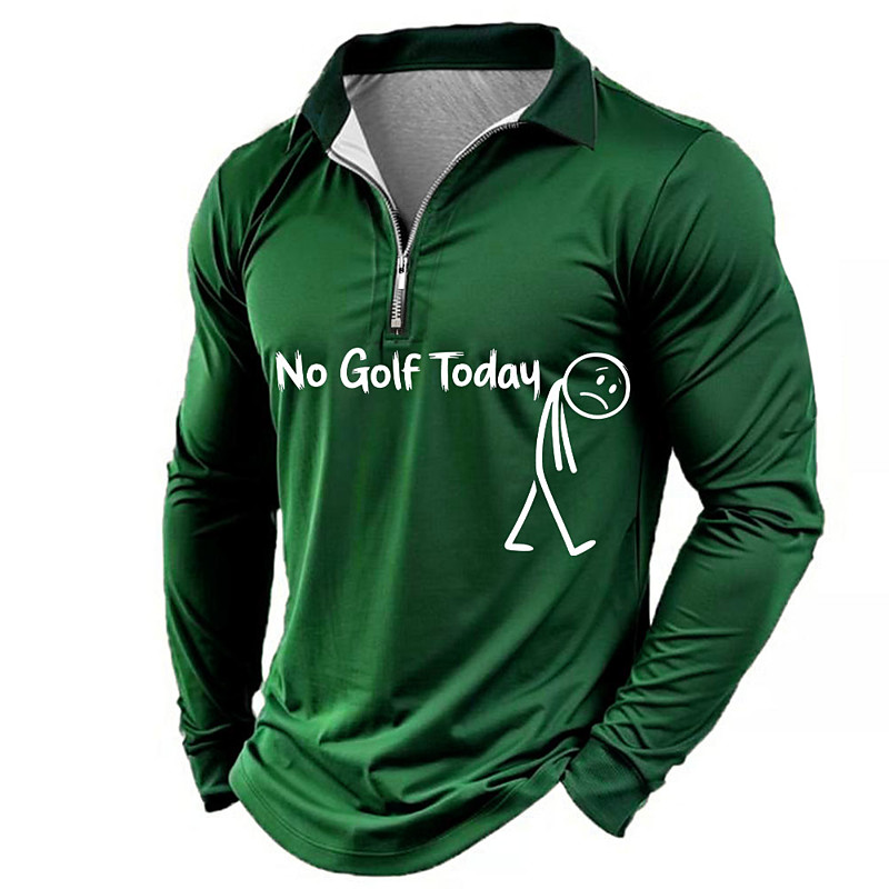Men's Text Polo Long Sleeve Polo Shirts Lapel Casual Daily Wear 3D Print Quarter Zip Polo Spring Fall Winter Black Green