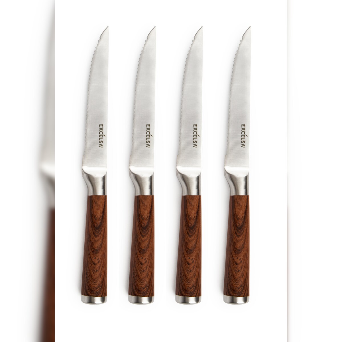 Excelsa Set mit 4 Steakmessern Wood Stahl 23x2,2x2 cm Braun