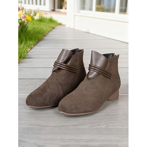 stivaletti da donna marroni con tacco basso, cerniera laterale e cinturino con fibbia: stivali casual eleganti per l'autunno e l'uso quotidiano