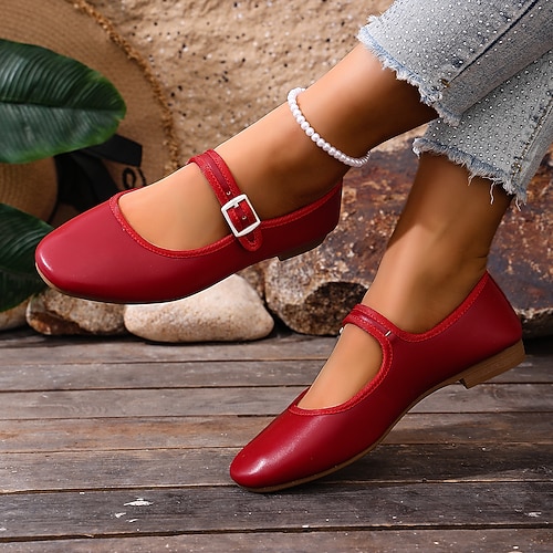 Per donna Casuale Tacco basso Punta quadrata Casual Finta Pelle Cinturino alla Caviglia Nero Bianco Rosso chiaro