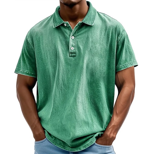 Per uomo Tinta unica Semplice Maglia da golf Manica Corta Casual Quotidiano Athleisure Casual Quotidiano Bottoni Estate Nero Rosa Blu marino