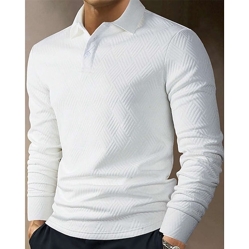 Per uomo Maglia da golf Polo da Golf Lavoro Casuale Bavero Manica Lunga Essenziale Moderno Semplice Jacquard Bottoni Primavera Autunno Vestibilità regolare Nero Bianco Blu marino Maglia da golf