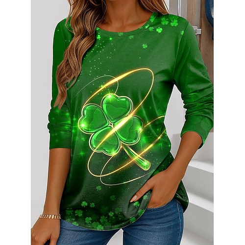 Maglietta Donna St. Patrick's Day Fortunata Grafica Shamrock Vintage Stile Classico Maniche Lunghe Collo Dritto Top Regolari Stampa Quotidiana Fine Settimana Verde Primavera Autunno Inverno