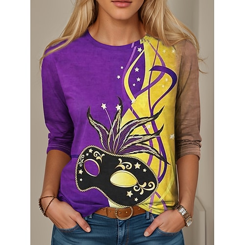 Maglietta da donna Carnival Graphic Fashion Casual a maniche lunghe colletto rotondo top regolari stampa quotidiana fine settimana blu nero viola estate primavera autunno