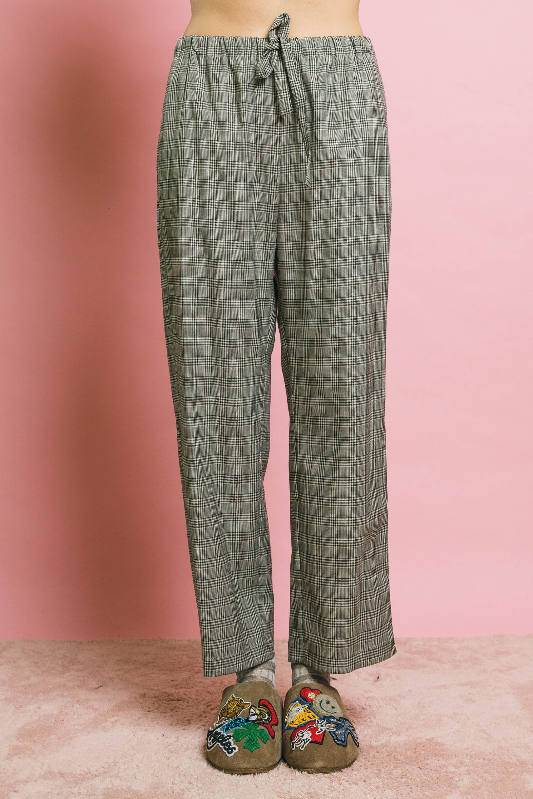 M1d0104 panna pantaloni solotre latte check tortora, 40