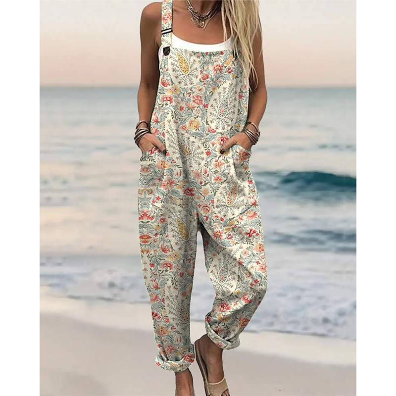 Women's Dungarees Active Graphic Sleeveless Wide Leg Print Vacation Street Loose Fit Yellow Red Blue Summer