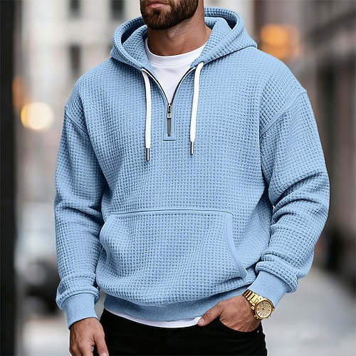 Per uomo Felpa con cappuccio Felpa con cappuccio a nido d'ape Felpa con cappuccio e zip corta Blu marino Grigio chiaro Grigio scuro Azzurro Con Cappuccio Semplice Tasca a marsupio Testurizzato Sport