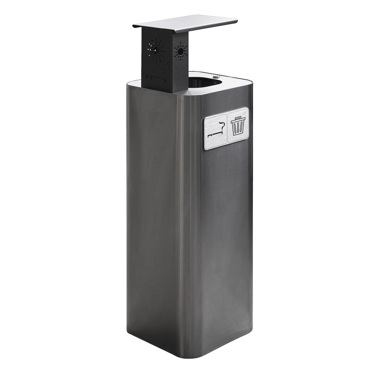 Stil Casa Abfallbehälter mit Aschenbecher, Edelstahl, 30x30xh. 102 cm, obere Abdeckung, Piktogramm aus Aluminium, 60 Liter, glänzend.