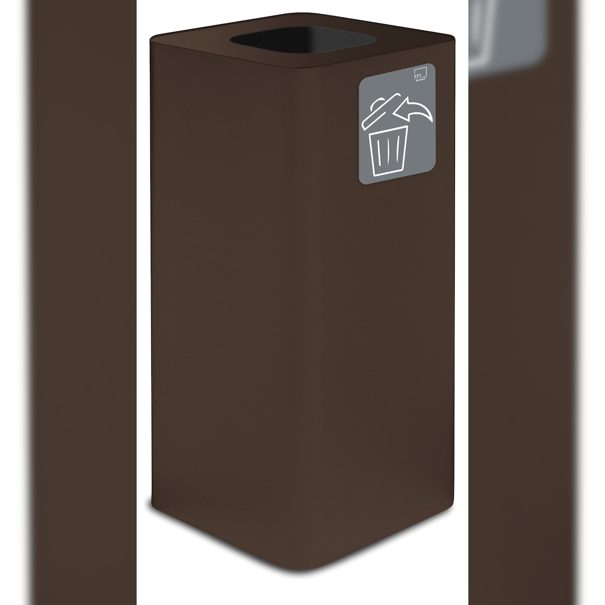 Stil Casa PURE Abfallbehälter, lackierter Stahl, 38x38xh. 80 cm, mit magnetischem Piktogramm, 100 Liter, corten.