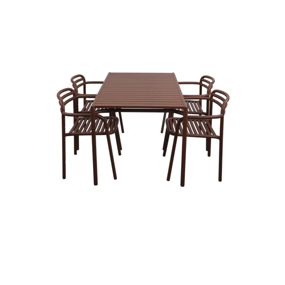 Cane-line, Bliss Esstisch inkl. vier Stühlen mit Armlehnen – Wüstenrotes Aluminium