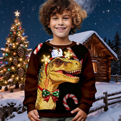 Jungen 3D Dinosaurier Sweatshirt Langarm Frühling Herbst Mode Basic Kinder 4-12 Jahre Rundhalsausschnitt Outdoor Lässig Täglich Normale Passform
