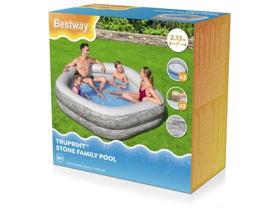 BESTWAY Puhallettava perhepuutarha-allas 213x206x53cm + puhallettavat istuimet + mukitelineet