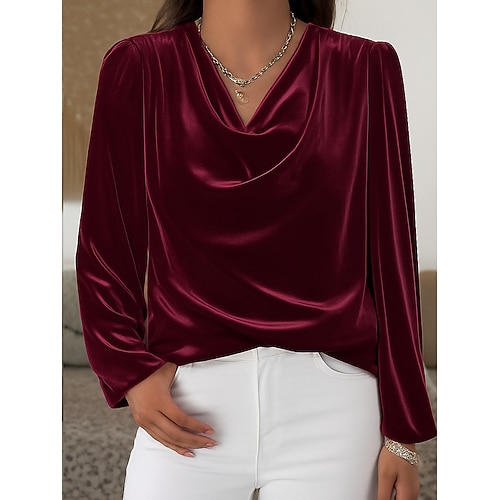 camicia da donna in velluto natalizio vintage per feste festività semi formale abbigliamento formale nero vino blu viola verde autunno inverno