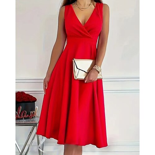 Per donna Abito Midi Abito nero Vestito da Festa Abito da Cocktail Elegante Moderno Festa serale Feste Compleanno Vestibilità regolare Semplice Senza Maniche Scollo a V Blu Nero Rosso Estate Primavera
