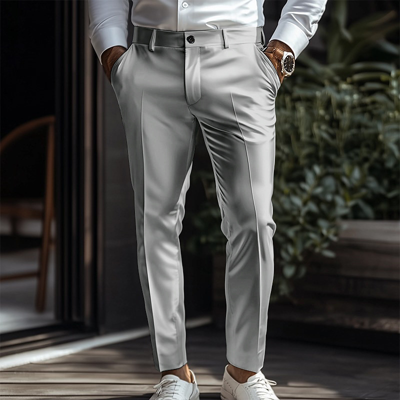 Men's Trousers Dress Pants Silk Like Satin Pants Suit Pants Pocket Plain Breathable Ankle-Length Wedding Party Business Fashion Streetwear Slim Silver Black Inelastic