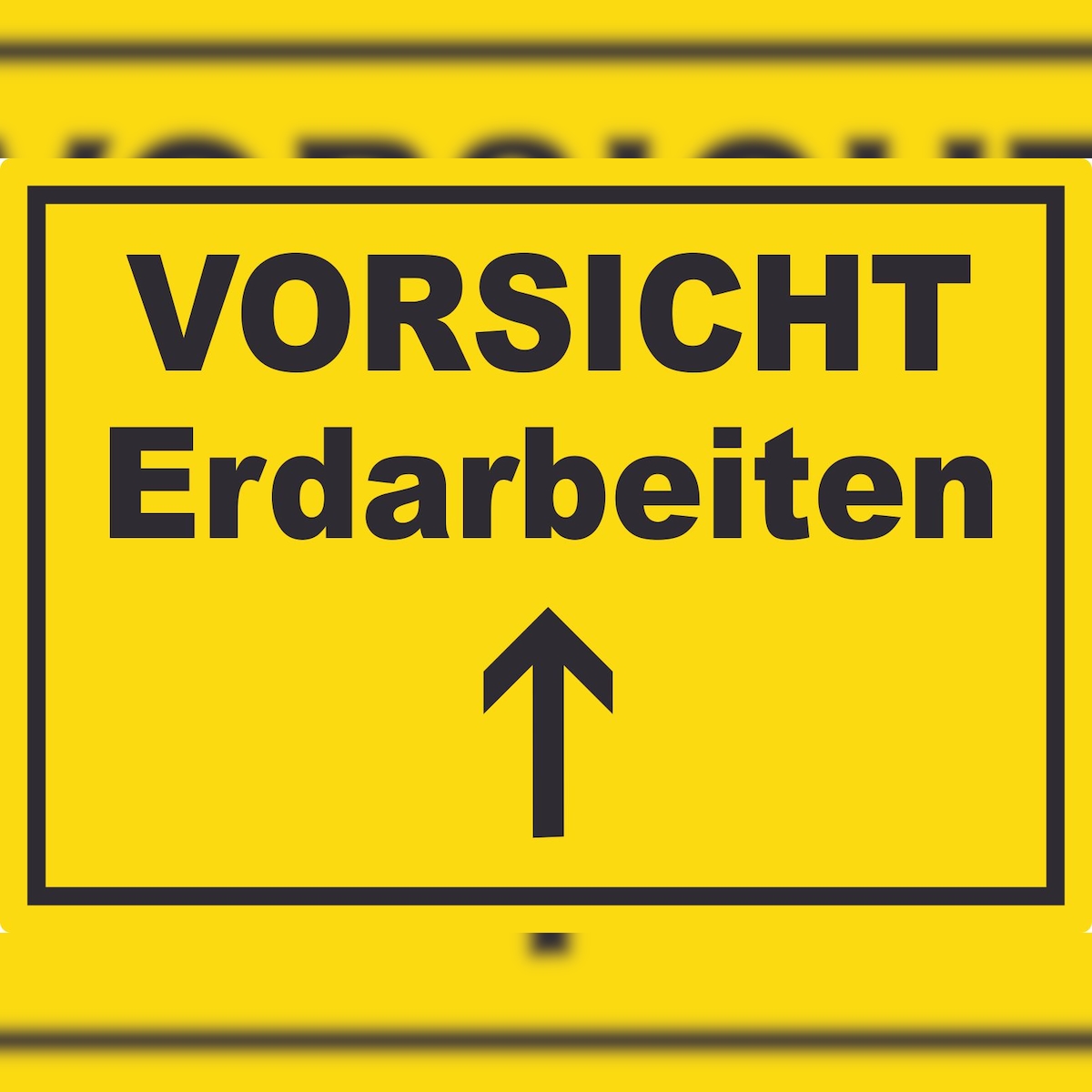 HB-Druck Vorsicht Erdarbeiten mit Richtungspfeil oben Aufkleber A4 (210x297mm)