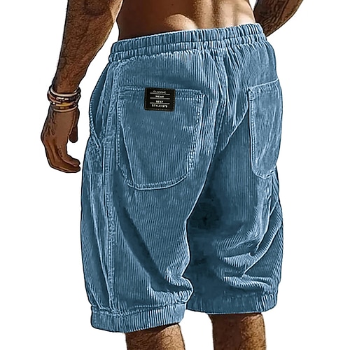 Per uomo Pantaloncini Estivi Shorts da Spiaggia Pantaloncini casual Pantaloncini di velluto a coste Coulisse Elastico in vita Tinta unica Comodità Lunghezza al ginocchio Quotidiano All'aperto Ferie