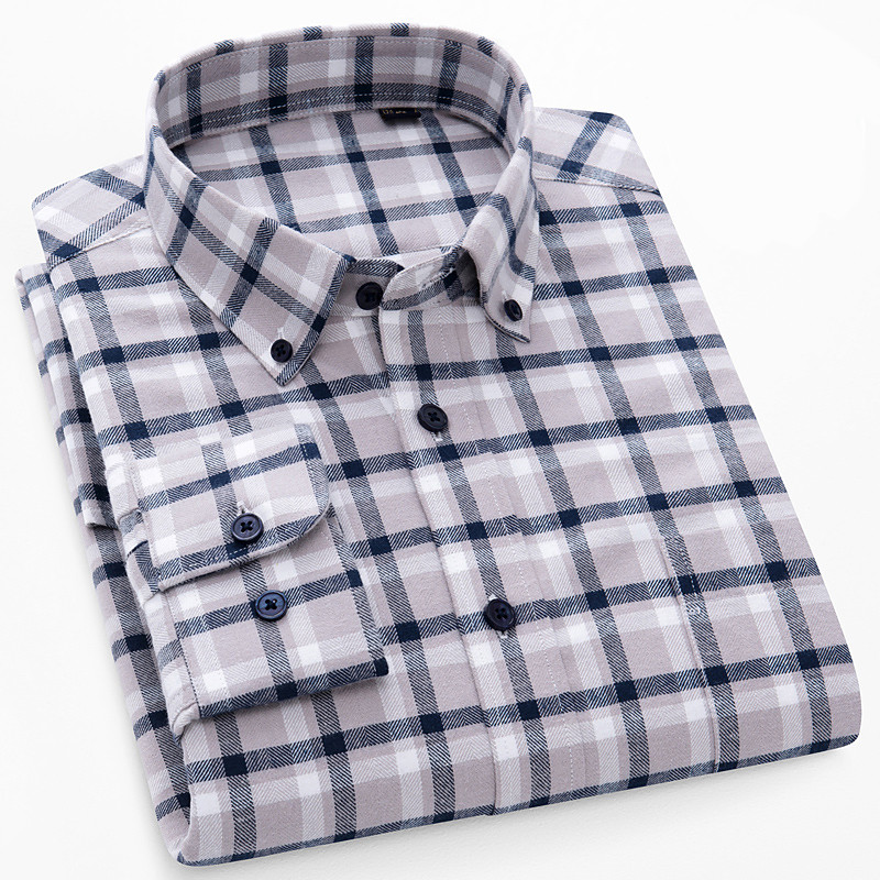 Men's Shirt Dress Shirt Button Down Shirt Plaid Shirt Plaid / Striped / Chevron / Round Daily Wear Corporate Clothing Whitekhaki Dark Navy Royal Blue Brown Long Sleeve Shirt Collar All Seasons