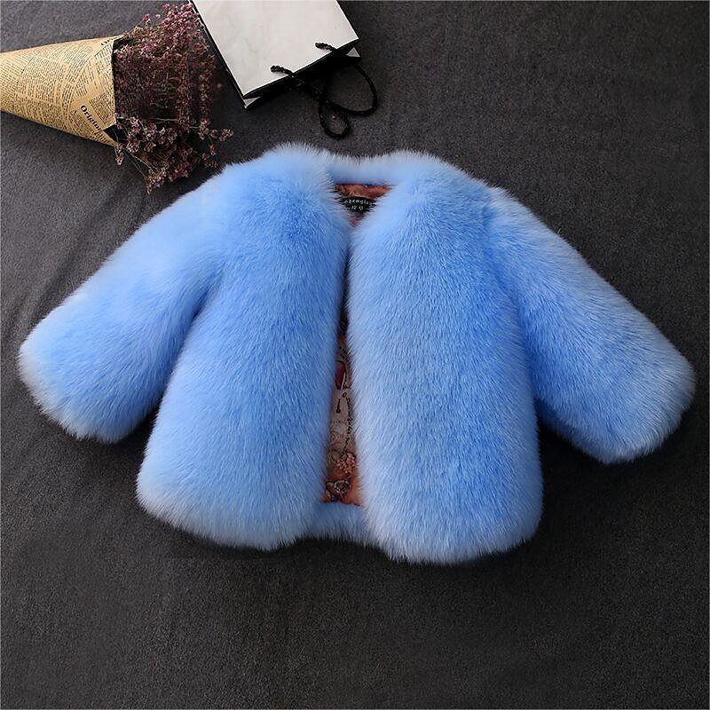 Toddler Girls' Faux Fur Coat Solid Color Active School Coat Outerwear 7-13 Years Winter Light Blue Pink khaki
