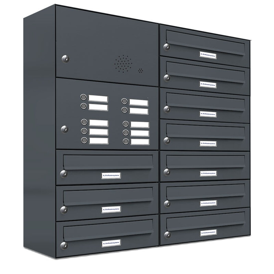 AL Briefkastensysteme 10 Fächer Premium Wand Briefkasten Anlage RAL 7016 Anthrazit Grau, Post A4, robust, wetterfest, Artikelnummer: 132P10EA2KSP7016