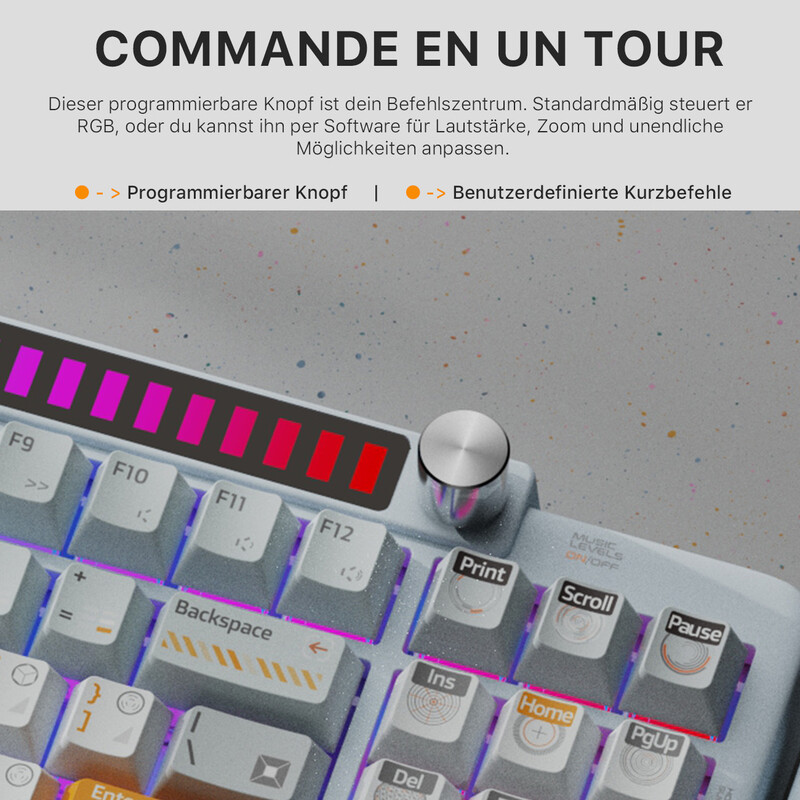KEYSME Lunar 01 Mechanische Tastatur – 87-Tasten-Tastatur mit drei Modi, Rhythmusbeleuchtung, Hot-Swap-Schaltern, programmierbarem Drehknopf, PBT-Tastenkappen und 4000-mAh-Akku, Weiß