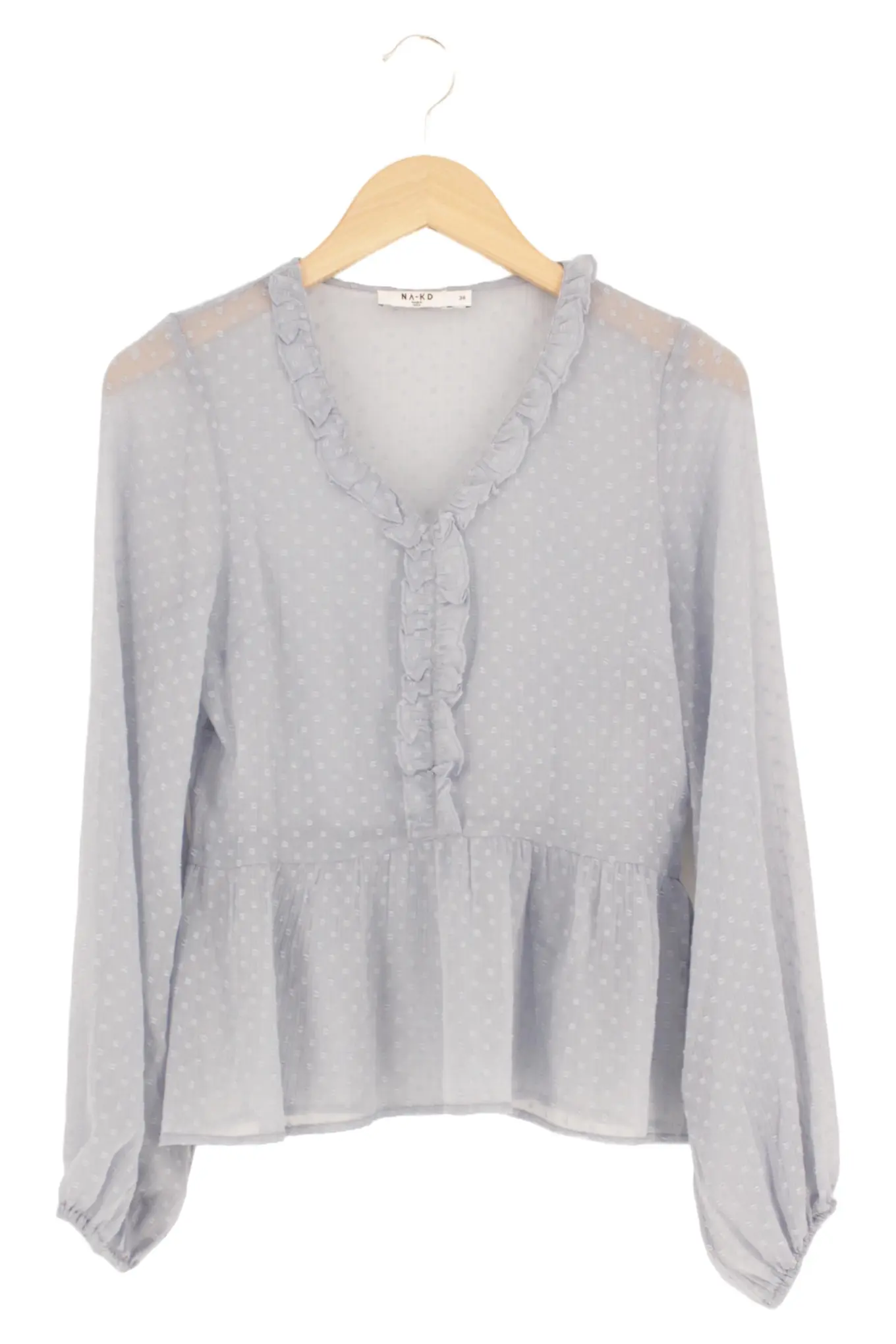 NA-KD Bluse Damen Grau Größe 34 Rüschen Vintage