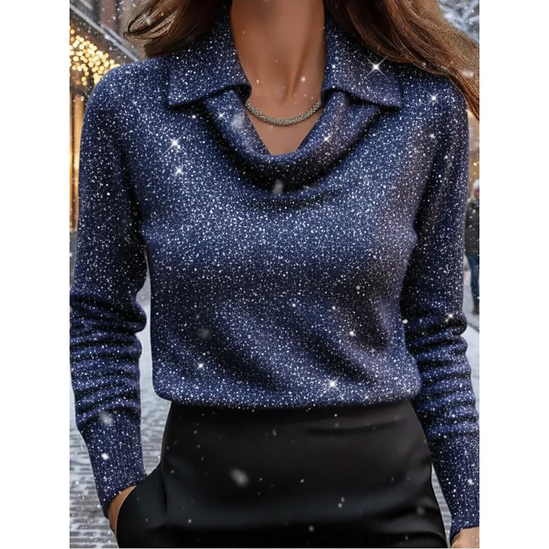 Women's Shirt Ombre Graphic 3D Elegant Stylish Basic Long Sleeve Cowl Neck Regular Tops Work Party Evening Wear Daily Ruched Draped Wine Blue Green Fall Winter