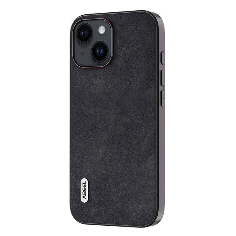 ABEEL Mobilskal till iPhone 15 Plus Texturerad PU Läder Ultra Tunn - Svart