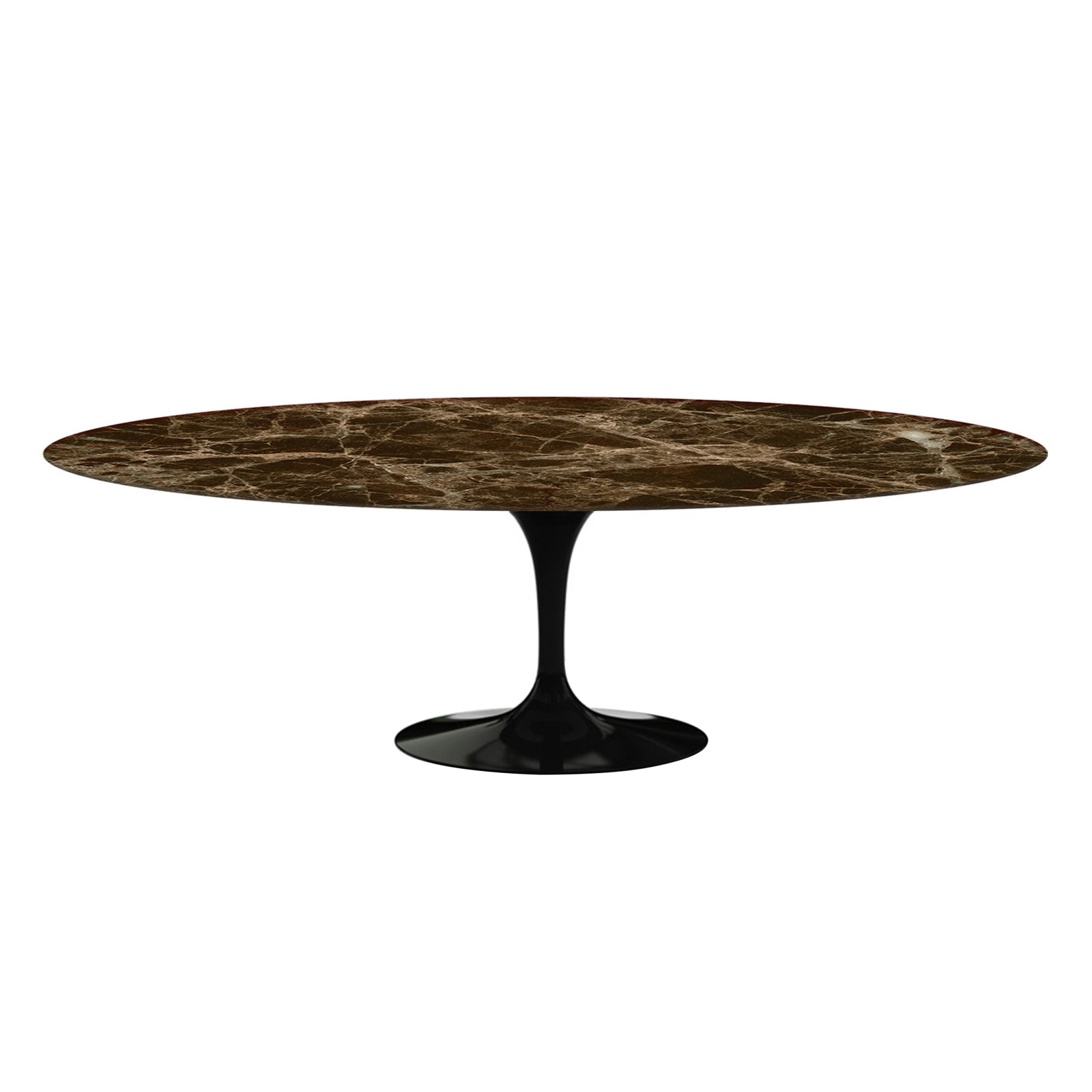 Knoll - Saarinen Oval Table - Matbord, 244 x 137 cm, Svart underrede, skiva i glansig brun Emperador marmor - Matbord - Eero Saarinen - Brun - Metall/Sten