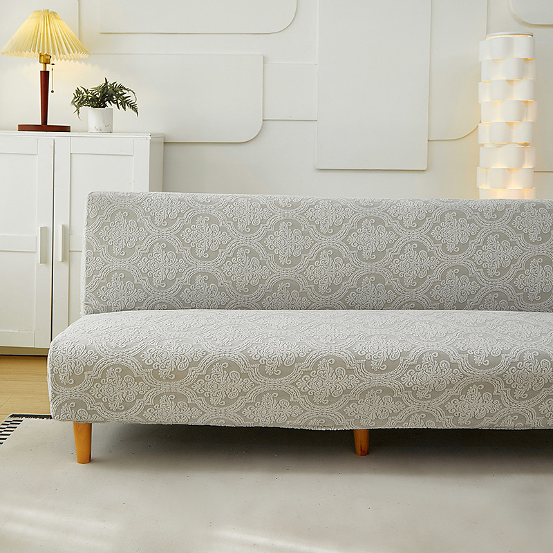 Jacquard Fabric Armless Sofa Bed Cover Sofa Slipcovers Stretch Protector Elastic Bench Cover