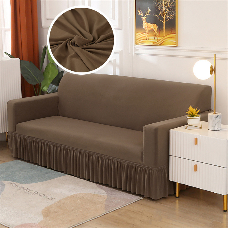 Sofa Cover With Skrit Solid color Skirt Style Sofa Cover Simplicity for Living Room Slipcovers Sofa Cover Seasonal Styles Elastic Couch Cover Sofa Towel Chair Protector 1PC