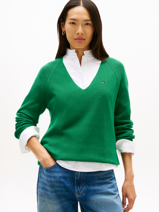 Tommy Hilfiger Pullover "CO CARDI STITCH V-NK LS" Gr. XXL in GREEN | 100% Baumwolle