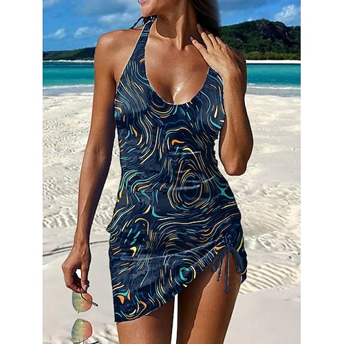 Per donna Costumi da bagno Tankini Due pezzi Gonna Costume da bagno Arricciato Vacanza Abbigliamento da Spiaggia Grafico Collo a U Senza Maniche Costumi da bagno